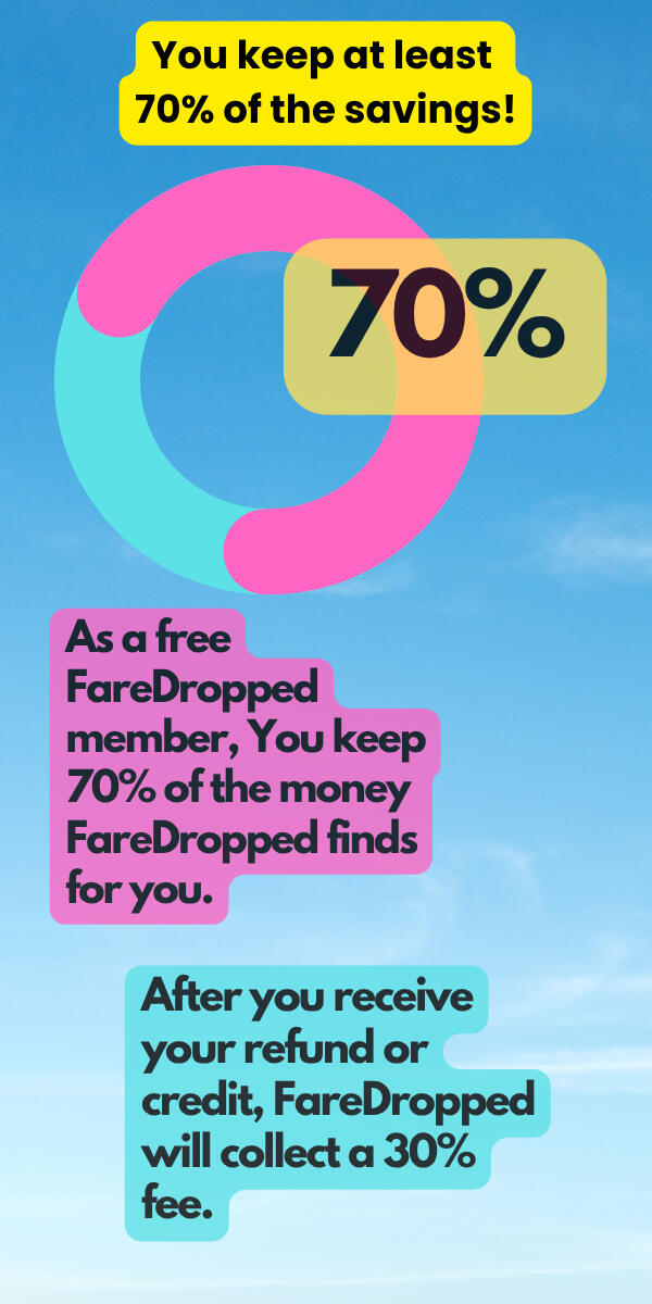 After you receive your first airline credit with FareDropped, you'll be able to upgrade to a subscription membership, with fees as low as 15 percent of the refund or voucher you receive.We ask you to start off with free membership so you can see how easy it is to save with FareDropped and then decide which option is best for you. That way, it becomes clear that you have nothing to lose.What is FareDropped Pro?